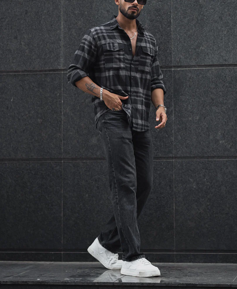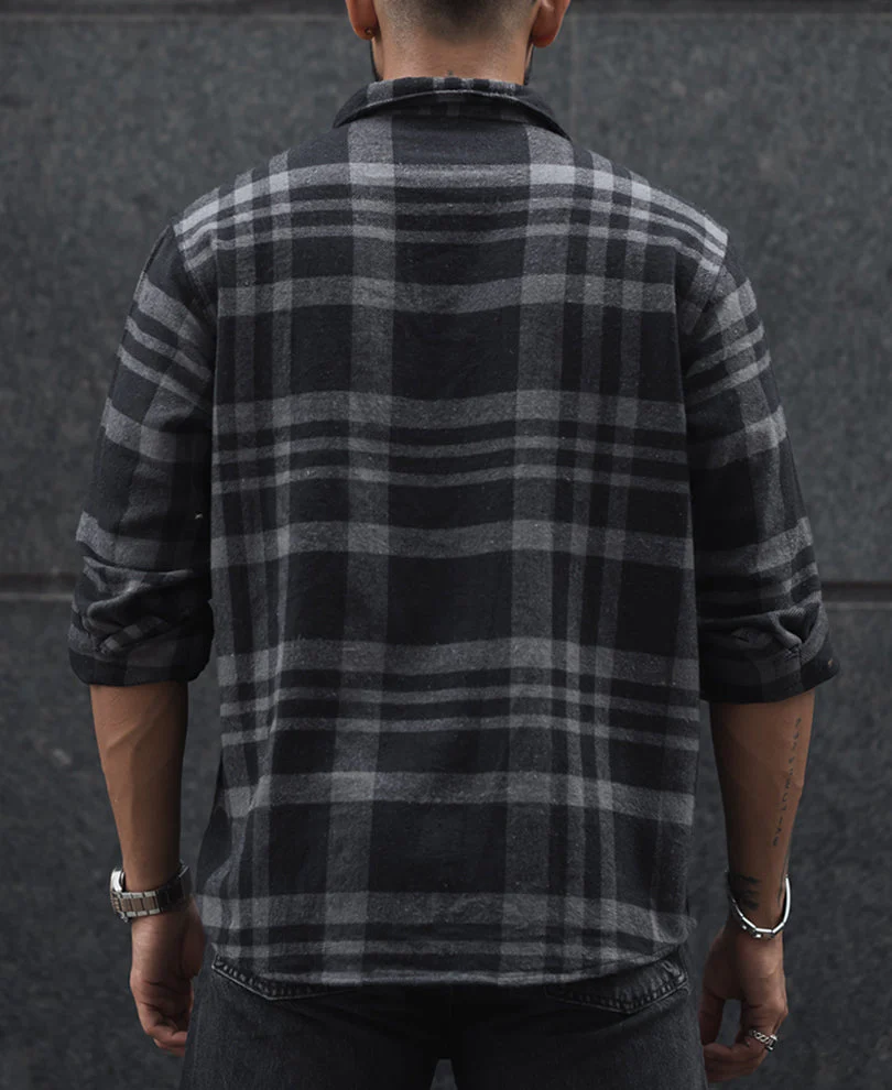 Black and Grey Checked Regular Fit Overshirt with Full Sleeve