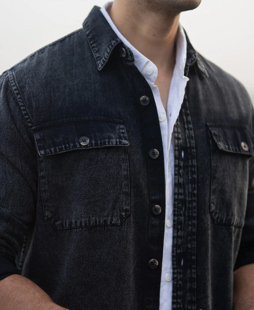 This charcoal-washed denim piece comes with bold pockets, rugged texture, and that perfectly broken-in vibe; like it?s seen sunsets, road trips, and stories worth telling. Layer it over white tees for contrast or button it up for a sharper look.