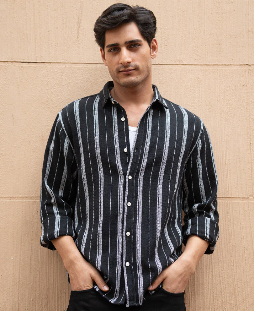 Black Structured Stripe Shirt