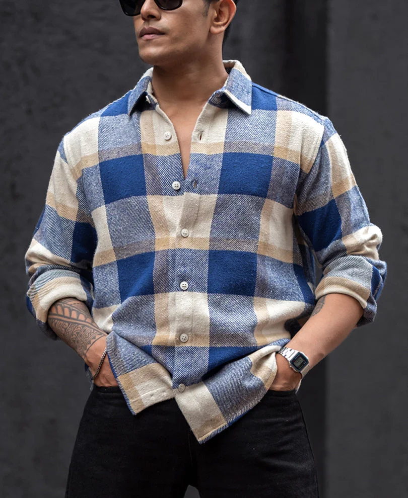 Blue And Off White Checked Regular Fit Full Sleeves Shirt