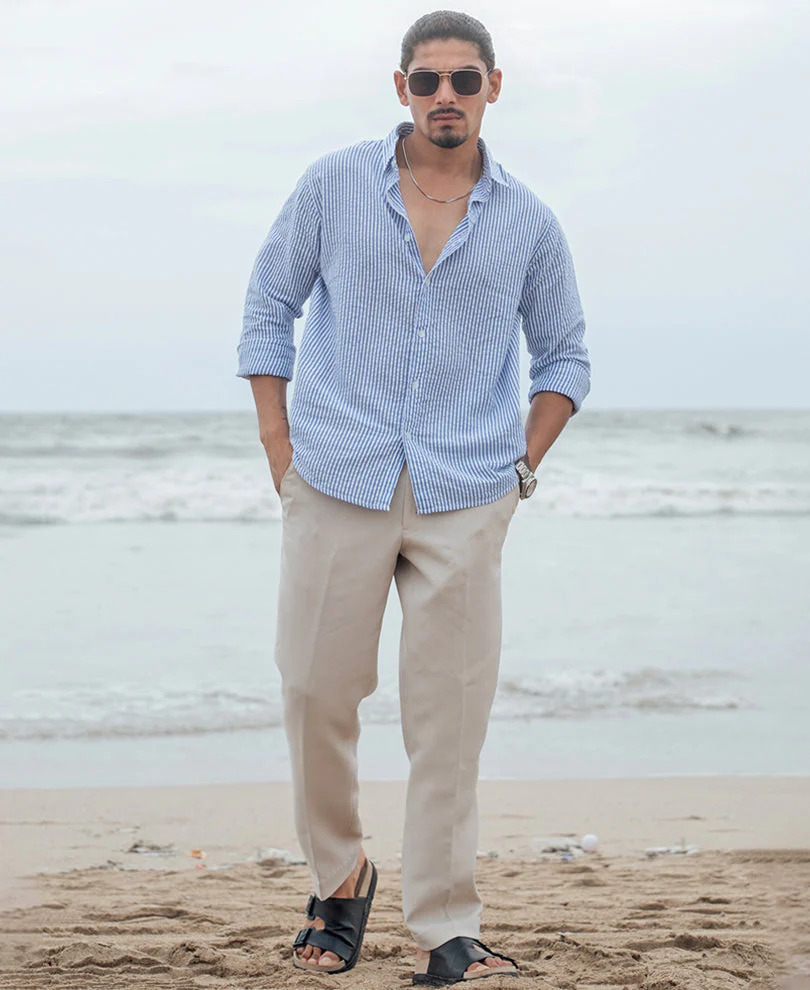 Blue and White Regular fit Striped Full Sleeves Shirt