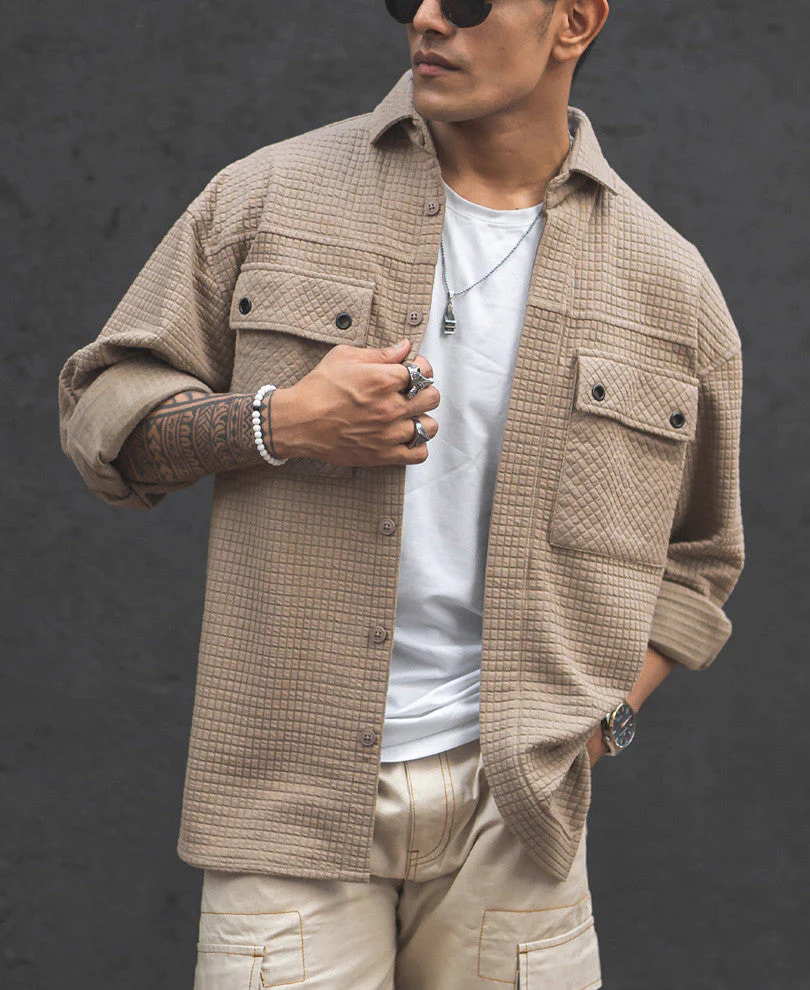 Camel Structured Double Pockets Shacket Oversized Shirt