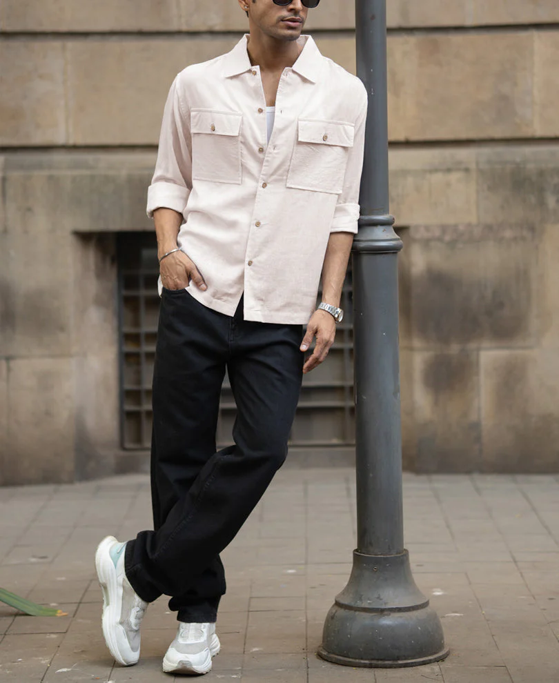 Cream Linen Double Pocket Shirt