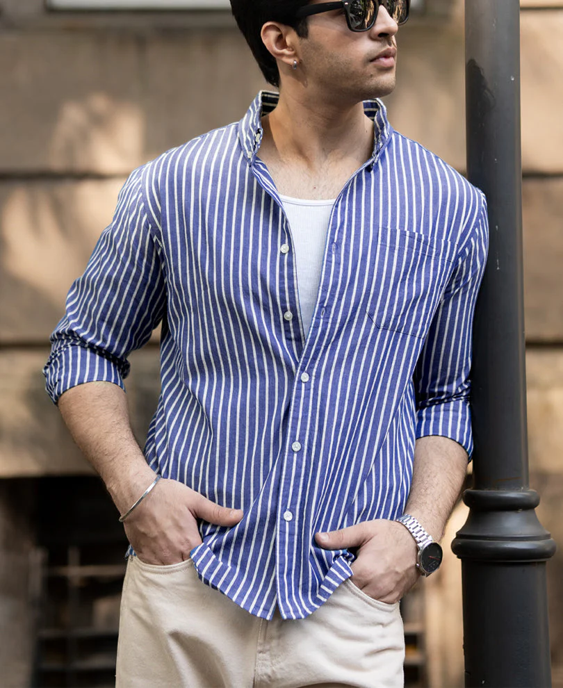 Dark Blue Lightweight Stripe Shirt