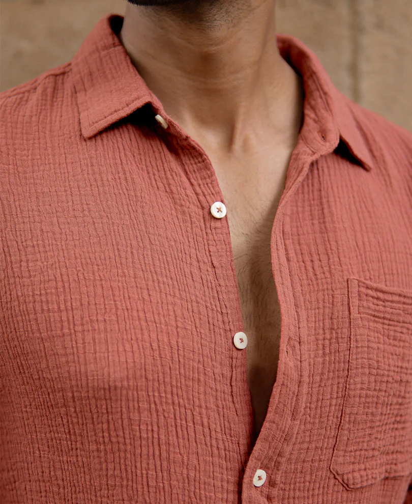 Dusty Coral Crinkled Shirt